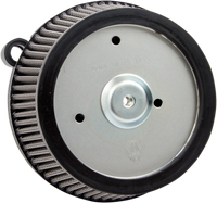 Each hidden breather is o-ringed at the heads and exits at the mouth of the injector/carb to provide efficient engine breathing, eliminating the need for any external hoses or hardware, Standard red filters are pre-oiled, washable and feature four-layers of surgical grade cotton for optimum filtration and maximum airflow, Synthetic filters feature a black synthetic material that is water resistant and never needs to be oiled; just wash and re-use, Radius air inlet provides maximum performance by providing unobstructed airflow, One-piece aluminum backing plate features patented hidden breather technology, All necessary hardware and instructions are included with each kit