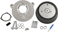 Each hidden breather is o-ringed at the heads and exits at the mouth of the injector/carb to provide efficient engine breathing, eliminating the need for any external hoses or hardware, Standard red filters are pre-oiled, washable and feature four-layers of surgical grade cotton for optimum filtration and maximum airflow, Synthetic filters feature a black synthetic material that is water resistant and never needs to be oiled; just wash and re-use, Radius air inlet provides maximum performance by providing unobstructed airflow, One-piece aluminum backing plate features patented hidden breather technology, All necessary hardware and instructions are included with each kit