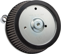 Each hidden breather is o-ringed at the heads and exits at the mouth of the injector/carb to provide efficient engine breathing, eliminating the need for any external hoses or hardware, Standard red filters are pre-oiled, washable and feature four-layers of surgical grade cotton for optimum filtration and maximum airflow, Synthetic filters feature a black synthetic material that is water resistant and never needs to be oiled; just wash and re-use, Radius air inlet provides maximum performance by providing unobstructed airflow, One-piece aluminum backing plate features patented hidden breather technology, All necessary hardware and instructions are included with each kit