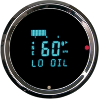 High-quality digital instruments that offer stable, accurate and easy-to-view readings, Teal display offers high-contrast visibility, even in sunlight, All gauges have machined aluminum housings, chrome front bezels and non-glare, scratch-resistant lenses, Adjustable 255 mph speedometer calibrates easily to almost any gearing and tire size combination; push button calibration, Tachometer displays as bar graph and features an adjustable shift point warning, Tachometer calibration is easily adjusted for combinations of one to 15 cylinders without using coils, Odometer has two resettable trip meters, an hour meter and miles-to-service meter with warning, Features turn signal, neutral, low oil pressure, low voltage, high beam and security indicators, Performs calculations and displays high speed recall, high rpm recall, 0-60 timer and 1/4-mile time and speed, Displays *check engine* and *wait to start* lights, Gear position indicator works with 3- to 6-speed transmissions, Automatic turn signal canceling compatible, 3-3/8* speedometer/tachometer will fit the 96-06 FLTR, FLHT fairing.