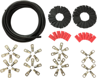 Build custom-length cables for an exact fit, Each kit contains the following: 25' cable (1), 1/4" terminals (20), 3/8" terminals (8), 5/16" terminals (12), black heat shrink (40) and red heat shrink (12), Using 12" cables as an example, this 25' custom cable kit will make 27 cables (a 12" cable uses 11" of cable and two terminal ends), for a substantial savings over precut lengths, Made in the U.S.A.