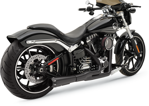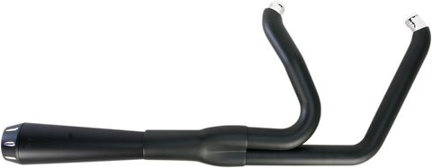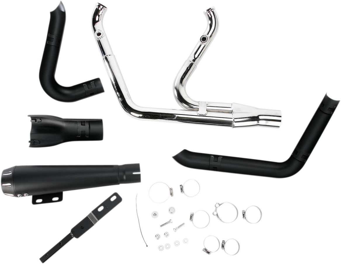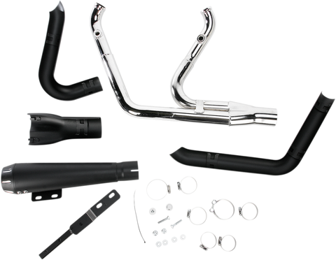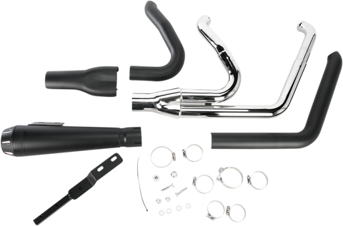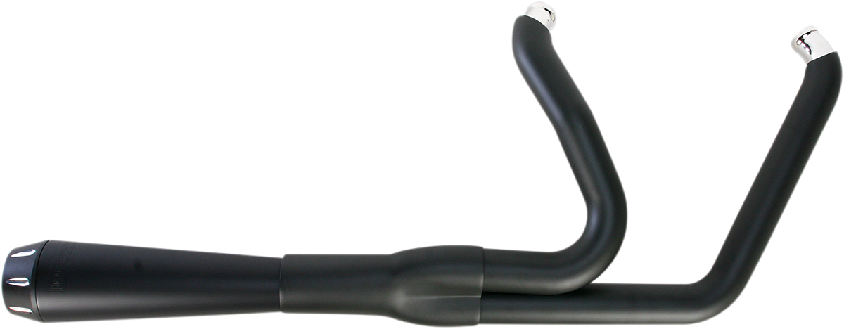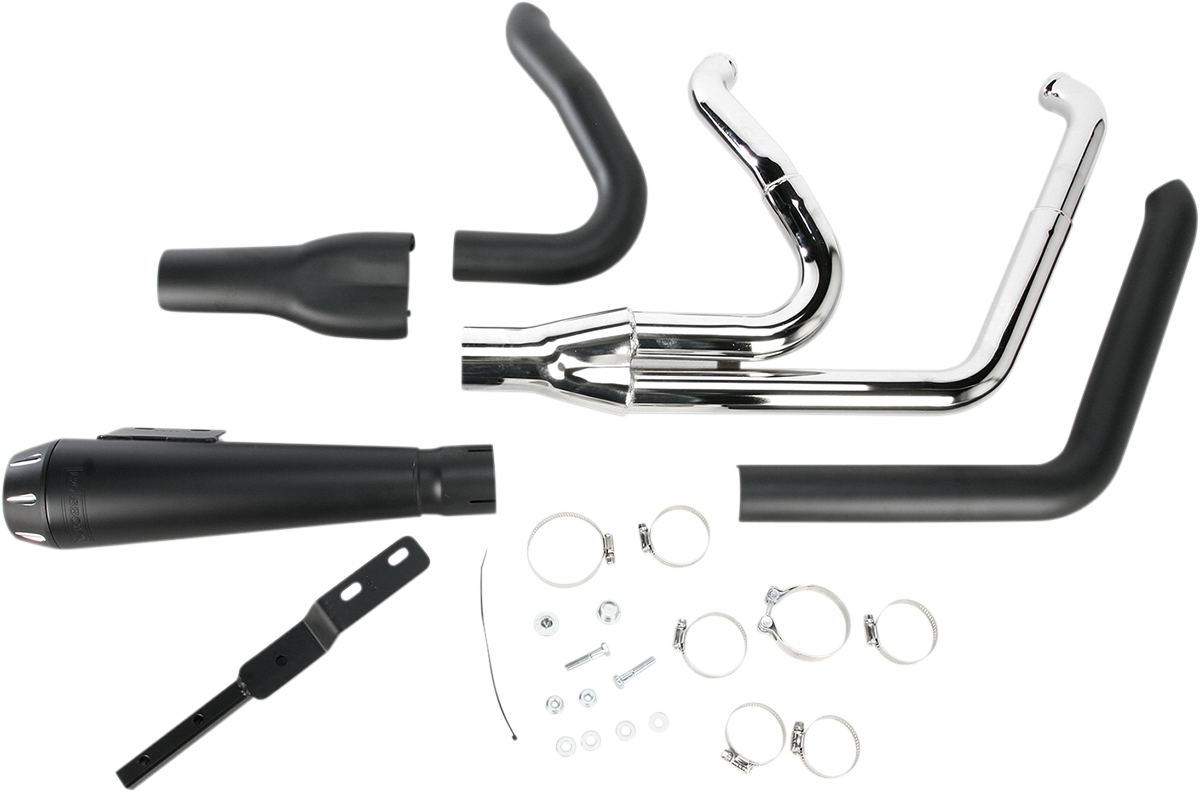 2:1 Exhaust - Black - Short - Breakout 1-3/4" headpipes step up to 1-7/8" into the collector to increase flow and improve performance, Includes: Heat shields, removable spiral-core louvered baffle, and mounting hardware, Made in the U.S.A.