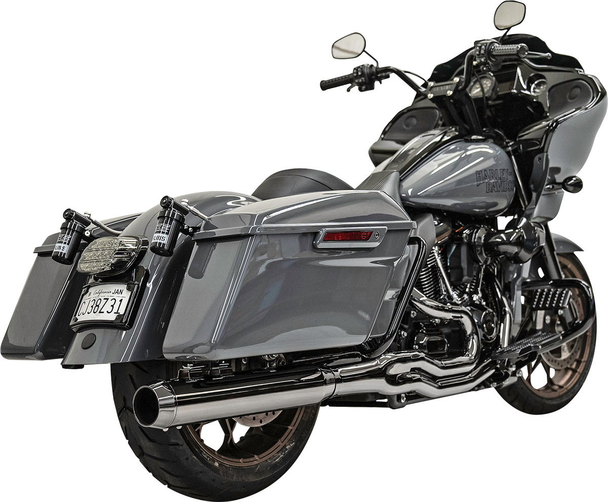 2-into-1 B4 Exhaust System Features equal-length headers, Stepped 1-3/4" to 1-7/8" headpipes with heat shields, Utilizes an advanced inner collector for maximum performance, 4" straight can muffler with matching billet end cap, Made in the U.S.A.