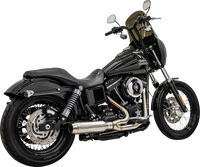Stepped headers - 1-3/4 to 1-7/8 designed for maximum performance and more ground clearance, Utilizes an advanced inner collector for maximum performance, Upswept Super Bike 4" stainless steel muffler body with aluminum end cap and a new removable conical performance baffle delivers a unique aggressive exhaust sound, Hand TIG welded, Includes 18mm O2 bungs for tuning, 12mm adapters and plugs, Full coverage stainless heat shields for the front and rear header pipes included, Made in the U.S.A.