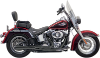 Designed specifically to address the needs of tuned motors built for high-horsepower applications, Features equal-length 1-3/4"-1-7/8" stepped headpipes, Tapered megaphone-style muffler body with 4" black billet end cap with contrasting machined flutes, Include full-coverage heat shields, Oxygen sensor ports and plugs (12 mm and 18 mm), Include removable baffle, Made in the U.S.A.