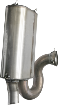 Muffler - Stainless Steel - Slingshot A stainless 4x8x12" Muffler housing with louvered core for an aggressive sound and added performance, Replaces the stock Slingshot Suspended muffler, Includes hardware kit, Made in the U.S.A.