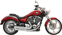 Over-and-under pipes with turn-out ends, Full-coverage heat shields, 1-3/4" headpipe steps to 1-7/8"; stepped headpipes improve exhaust flow for more power, Heavy-duty 16-gauge steel construction for long life, DCB-designed baffle manages flow to improve low-end torque, Include all mounting hardware, Made in the U.S.A.
