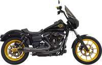 One piece 2-into-1 stepped headers with Upswept Megaphone Muffler, Design with a louder, more aggressive tone than the Shorty Road Rage exhaust systems, Stepped 1 3/4" to 1 7/8" headpipes, Stepped 1-3/4* to 1-7/8* headpipes., Utilizes an advanced inner collector for maximum performance, Fully welded one-piece design, Stainless Steel 304 Construction, 10* megaphone muffler with a removable louvered baffle that measures 10* x 2.25*, Removable end cap, Mild steel construction and full heat shields on chrome and black; stainless system has partial heat shields, Hand Tig Welded, 18 mm O2 bungs with 12 mm adapters, Discoloration is the result of tuning characteristics, cam timing, carburetor jetting and overheating, and thus is not covered by vendor warranty or caused by defective manufacturing, 18mm O2 Ports with 12mm Adapters and plugs, Fits Mid-Controls '91- 2017 and forward controls 2007-2017, NOT LEGAL FOR SALE OR USE IN CALIFORNIA ON ANY POLLUTION CONTROLLED MOTOR VEHICLES., Made in the U.S.A., There is no warranty on exhaust pipes and mufflers with regard to any discoloration. Discoloration (blueing) is the result of tuning characteristics, cam timing, carburetor jetting, overheating, etc., and is not caused by defective manufacturing., Installation of a new exhaust system may change your motorcycles fuel-air mixture requirements. Please consult the exhaust manufacturer directly with questions regarding any modifications that may need to be made during. or after, installing their product., NOT LEGAL FOR SALE OR USE IN CALIFORNIA ON ANY POLLUTION CONTROLLED MOTOR VEHICLES