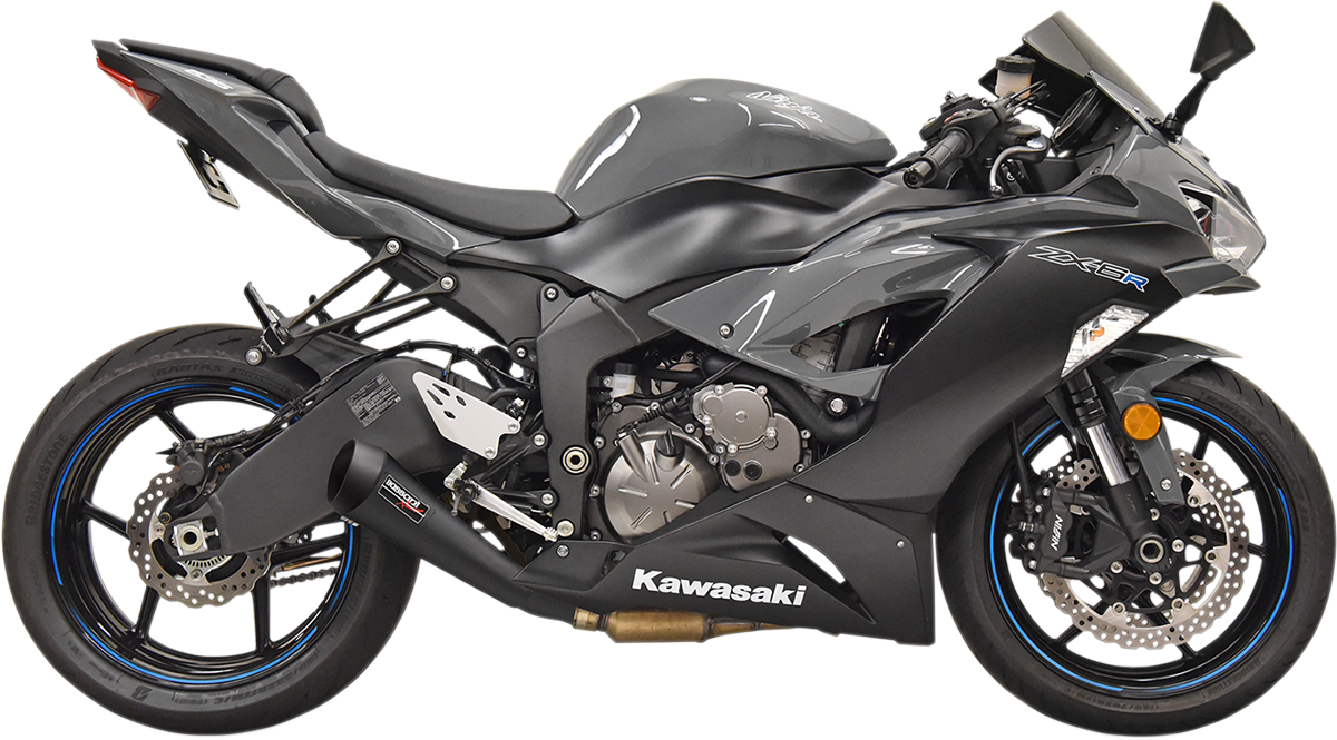 ZX-6R Slip-On - Black Hand TIG Welding, Removable Slash Cut Billet End Cap, Removable baffle, Aggressive exhaust note, Made in the U.S.A., Includes 18 mm O2 sensor ports and 12 mm adapters