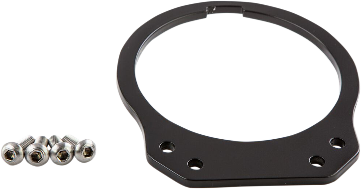 Allows for a tachometer or speedometer only setup, Designed to work with gauges that have built in LED dummy lights, Designed to inspire a sleek, low, custom look, Machined from aluminum, Coated with a durable black finish, Bolts-on directly without modifications, Stainless steel hardware included, LCD gauge models will lose high-beam, turn indicator, oil and neutral idiot lights, Installation requires British Customs Billet Headlight Ears, or a low-profile headlight, Made in the U.S.A.