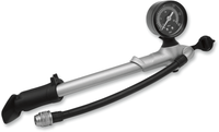 Twist-and-lock removable gauge allows safe, easy storage and transport; fits into a saddlebag or other storage area easily, For rear shock and front fork adjustable air suspensions; also may be used for emergency tire repairs, Rotary flexible hose, die-cast gauge base and ergonomic pump handle for simple operation, Fitted with a precise adjust button 2-3 psi (EU: 0,14-0,21 Bar) per push