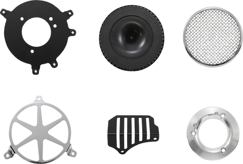 The Cobra system consists of a laser-cut, formed steel cover, separate mounting ring, and all the fasteners, seals, backing plate and mounting hardware for easy installation, Flows better than stock or competing units, in large part because of the unique internal venturi design of its inner filter, Slim profile keeps the unit away from the rider's leg, Formed stainless steel mesh insert, Optimizes overall performance, Made in the U.S.A.