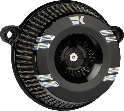 Instigator Air Cleaner - Klassic - Black - M8 Reusable black cotton element protected with stainless mesh, One-piece aluminum backplate, Oil catch can (M8 models only), Hidden breather