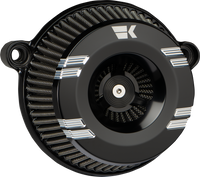 Instigator Air Cleaner - Klassic - Black - Twin Cam Reusable black cotton element protected with stainless mesh, One-piece aluminum backplate, Oil catch can (M8 models only), Hidden breather