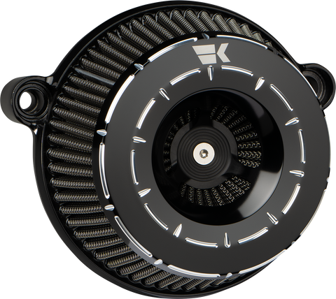 Instigator Air Cleaner - Tracer - Black - Twin Cam Reusable black cotton element protected with stainless mesh, One-piece aluminum backplate, Oil catch can (M8 models only), Hidden breather