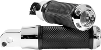 CNC-machined from billet aluminum, Durable, knurled rubber with an embossed PM logo, Optimal comfort and style, Mounts directly to OEM H-D clevis, Made in the U.S.A., See page 1744 of the 21 Drag Specialties Fatbook for an explanation of footpeg mount styles.