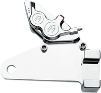Caliper - Rear - Chrome - 84-99 FLH Precision machined from billet aluminum, Four-piston dual-action design for positive stopping power, Includes mounting bracket, brake pads, bleeder screw and 3/8"-24 banjo bolt, Made in the U.S.A.