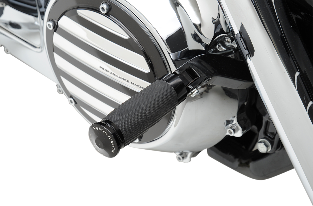 Contour Footpeg - Black Designed to match Performance Machine Contour grips, Rubber-wrapped or rubber-insert styles, Male-mount design fits most H-D applications, Made in the U.S.A.