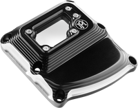 Aluminum lens bezel eliminates cracking, CNC-machined from billet aluminum, UV, abrasion, hazing, and yellowing resistant polycarbonate lens, Designed as a direct replacement for OEM transmission top cover, Chrome hardware and gaskets included, Easy bolt-on installation, Match perfectly with entire line of PM Vision Series products, Hardware included, Scallop, Formula and Vision designs, Vision design features a polycarbonate lens allowing for a view inside the machine, Made in the U.S.A.