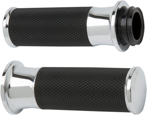 Each grip design features excellent traction for your hands, Billet aluminum accents are intricately machined, Smooth design features 1-1/4" billet aluminum inner collars, diamond knurled rubber grips and billet aluminum end caps, All grips come with throttle sleeve installed and include grip glue and simple to follow instructions, Matching footpegs and shifter pegs are available separately