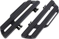 CNC-machined billet floorboard bodies, Vibration isolating footrests offer enhanced foot traction through Airtrax style rubber tops that feature a proprietary internal structure engineered specifically to absorb vibration associated with V-twin engines , AirTrax style shift pegs and footpegs are available separately for matching passenger footrests and control arm pegs, Extended length for added comfort and more foot room, 18" long x 5-3/4" wide x 1" thick, Featuring Arlen Ness laser logo, Sold in pairs