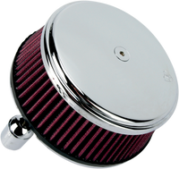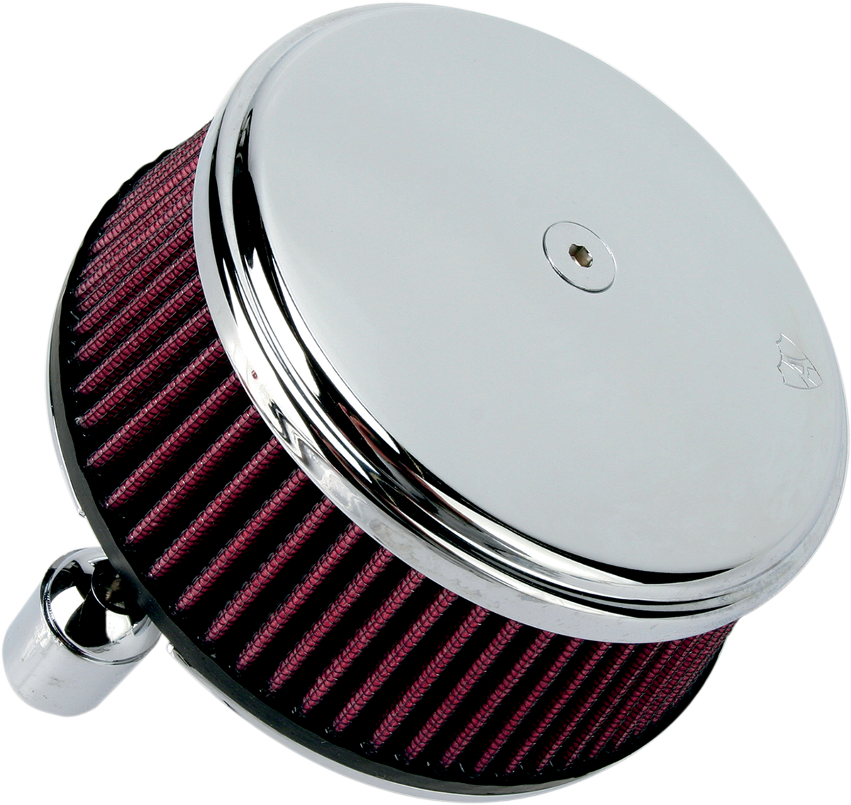 Features a one-piece aluminum backing plate/carb support bracket with patented hidden breather technology and radius air inlet, Breather passages exit at the mouth of the carburetor/throttle body, creating a virtually closed-loop system, Kit includes high-performance filter, backing plate and steel outer cover, All necessary hardware and instructions are included with each kit