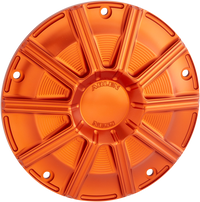 Derby Cover - Orange Machined from 6061-T6 billet aluminum, Chrome hardware and gasket included, Matching point and inspection covers available separately, Sold each