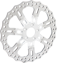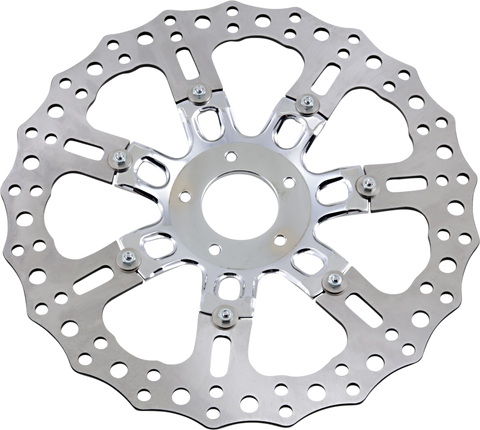 Front Rotor - 7 Valve - 14" - Chrome High performance floating brake rotors, 420 stainless steel outer band cut and drilled for optimum performance and heat dispersion, Inner carriers are CNC machined from aircraft quality billet aluminum