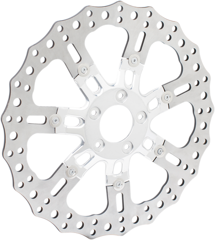 Front Rotor - 7 Valve - 14" - Chrome High performance floating brake rotors, 420 stainless steel outer band cut and drilled for optimum performance and heat dispersion, Inner carriers are CNC machined from aircraft quality billet aluminum