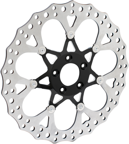 Front Rotor - Procross - 14" - Black High performance floating brake rotors, 420 stainless steel outer band cut and drilled for optimum performance and heat dispersion, Inner carriers are CNC machined from aircraft quality billet aluminum