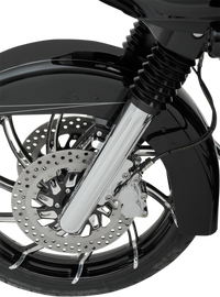 Hot Legs Fork Legs - Dual Disc - Deep Cut - Chrome CNC machined from billet aluminum, Features a tapered design with hidden axle, Dual-disc for touring applications, Accepts factory or aftermarket suspension internals