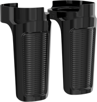 Lightweight Performance Bagger fork guards inspired from the racetrack, Replace factory fork boots while still protecting inner fork tubes and seals, Universal design works with factory and aftermarket front ends (direct bolt-on installation), CNC machined from 6061 billet aluminum, Includes a set of fork dust seals