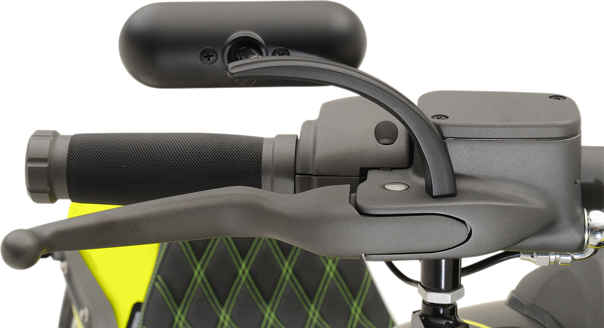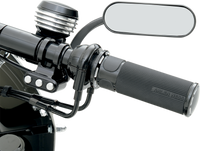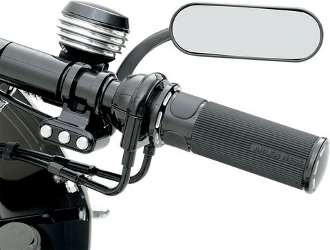 Mirror - Micro - Mini - Side View - Oval - Black - Right Standard and metric hardware included, Adjustable swivel mount mirror head, Compact size