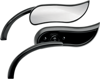 Mirror - Micro - Upswept - Side View - Cat Eye - Black - Left Standard and metric hardware included, Adjustable swivel mount mirror head, Compact size