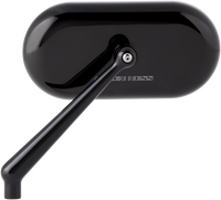 Mirror - Side View - Oval - Black - Left Standard and metric mounting hardware included, Heavy-duty stainless steel internal pivot hardware, Mirror head and stem forged from billet aluminum , Laser engraved Arlen Ness logo, Clean universal styling