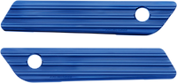 Saddlebag Latch Covers - Blue CNC machined from 6061-T6 billet aluminum, Direct bolt-on design utilizes factory hinge and lock assembly, Replace factory hinge covers, Mounting hardware included