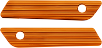 Saddlebag Latch Covers - Orange CNC machined from 6061-T6 billet aluminum, Direct bolt-on design utilizes factory hinge and lock assembly, Replace factory hinge covers, Mounting hardware included