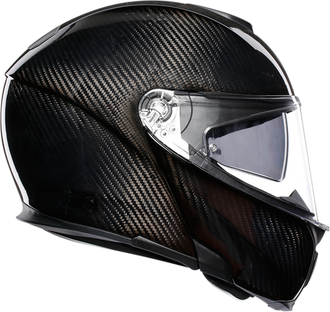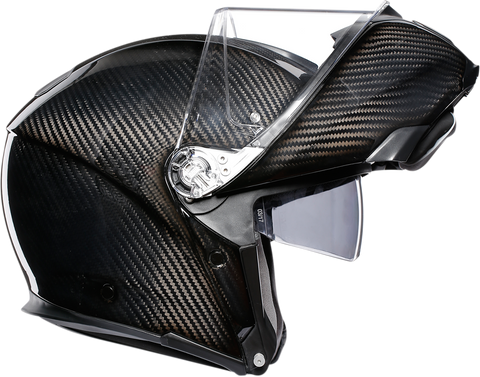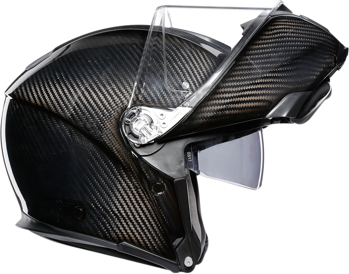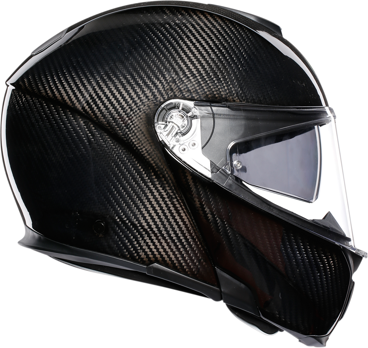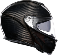 100% Carbon Fiber (shell and chin), Chin guard opening system designed to prevent accidental opening, Collarbone safe profile, Shell shape designed to maximize aerodynamic performance and to have 0 dynamic weight at 80 mph (130km/h), Adjustable rear spoiler reduces turbulence and maximizes stability, Two adjustable front vents and one adjustable rear extractor, Reversible crown pad features a double face use that allows the rider to select the preferred feel and climate: Warmer Side with Shalimar fabric for a soft and gentle touch or Cooler Side with Ritmo fabric for a fluid and fresh fit, All interior parts are easily removable and washable, Cheek pads: Ritmo fabric with Sanitized® (antibacterial protection), 2Dry (moisture wicking) and Microsense (premium skin comfort and wearing fluidity) treatments, Fit especially designed to allow wearing glasses, Clear, anti-scratch visor has 190° horizontal field of view and 85° vertical field of view, Patented Extra Quick Release System requires no tools and allows the visor to be removed and replaced in seconds, Multistep visor mechanism, 100% Max Vision Pinlock (120) included, The GT3 visor is anti-scratch, Integrated anti-scratch sun visor, removable without using tools, Titanium Double D retention system (43% lighter than standard steel DD), Winter wind protector is included