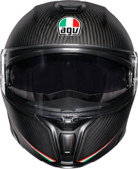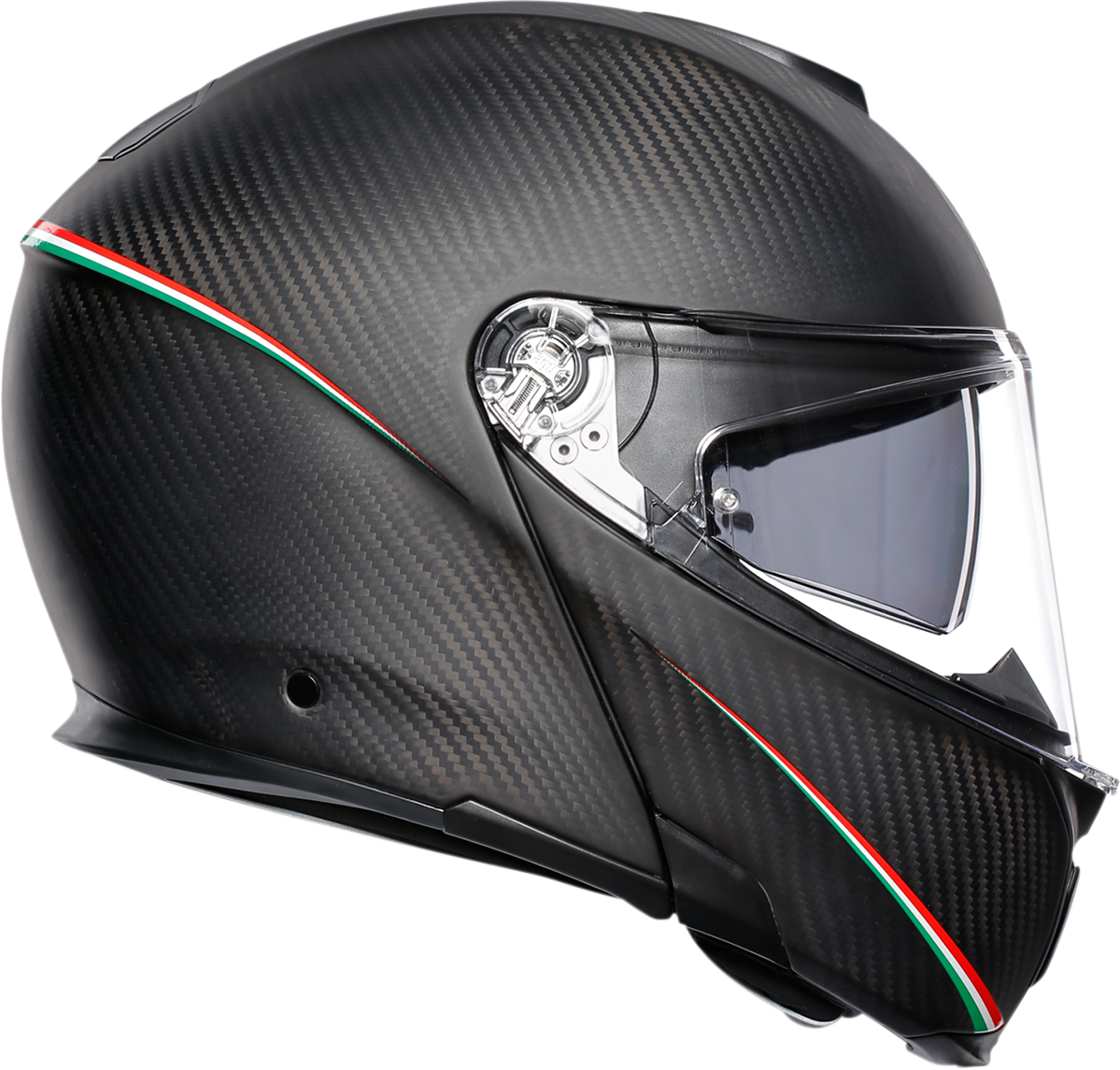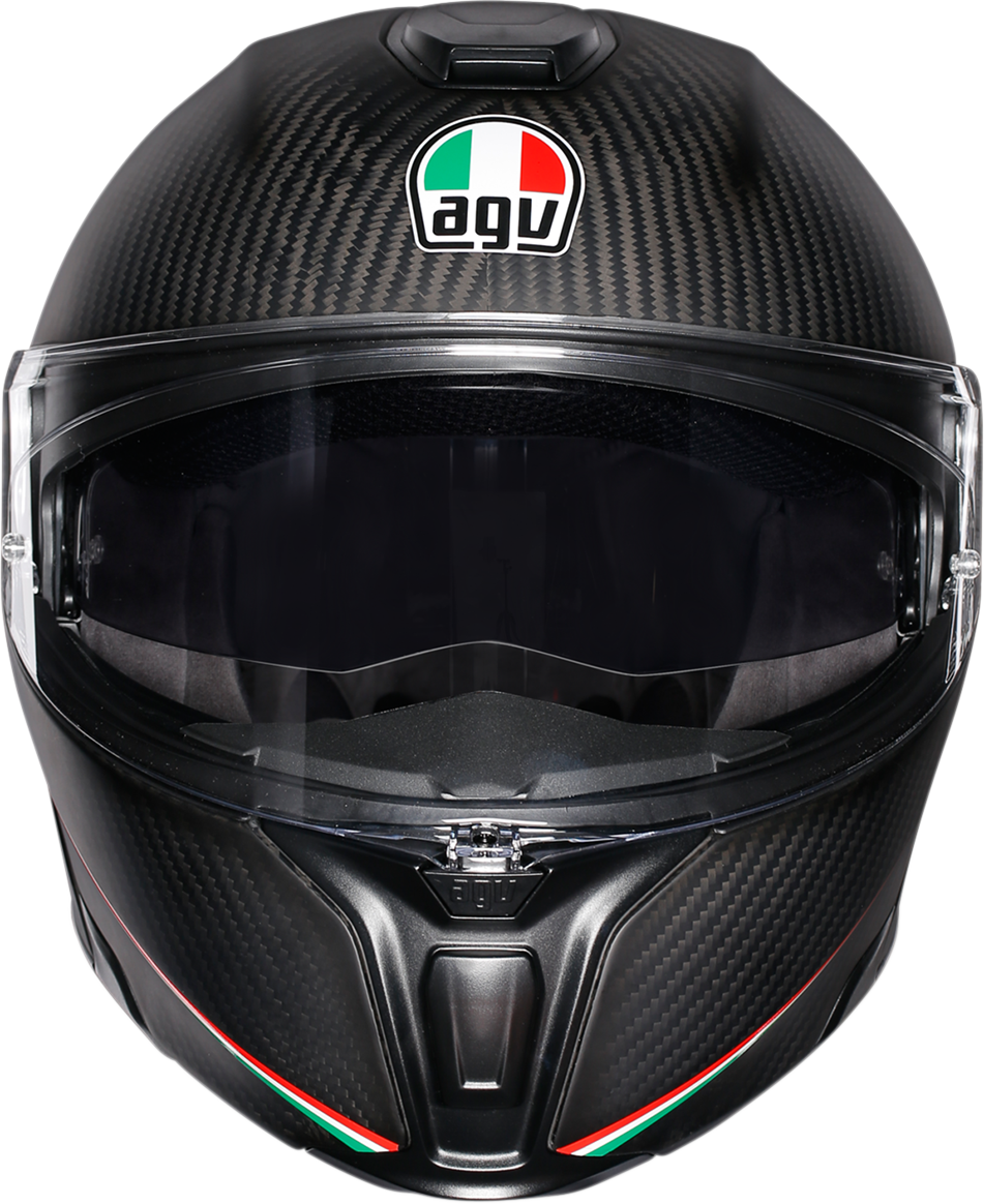 100% Carbon Fiber (shell and chin), Chin guard opening system designed to prevent accidental opening, Collarbone safe profile, Shell shape designed to maximize aerodynamic performance and to have 0 dynamic weight at 80 mph (130km/h), Adjustable rear spoiler reduces turbulence and maximizes stability, Two adjustable front vents and one adjustable rear extractor, Reversible crown pad features a double face use that allows the rider to select the preferred feel and climate: Warmer Side with Shalimar fabric for a soft and gentle touch or Cooler Side with Ritmo fabric for a fluid and fresh fit, All interior parts are easily removable and washable, Cheek pads: Ritmo fabric with Sanitized® (antibacterial protection), 2Dry (moisture wicking) and Microsense (premium skin comfort and wearing fluidity) treatments, Fit especially designed to allow wearing glasses, Clear, anti-scratch visor has 190° horizontal field of view and 85° vertical field of view, Patented Extra Quick Release System requires no tools and allows the visor to be removed and replaced in seconds, Multistep visor mechanism, 100% Max Vision Pinlock (120) included, The GT3 visor is anti-scratch, Integrated anti-scratch sun visor, removable without using tools, Titanium Double D retention system (43% lighter than standard steel DD), Winter wind protector is included