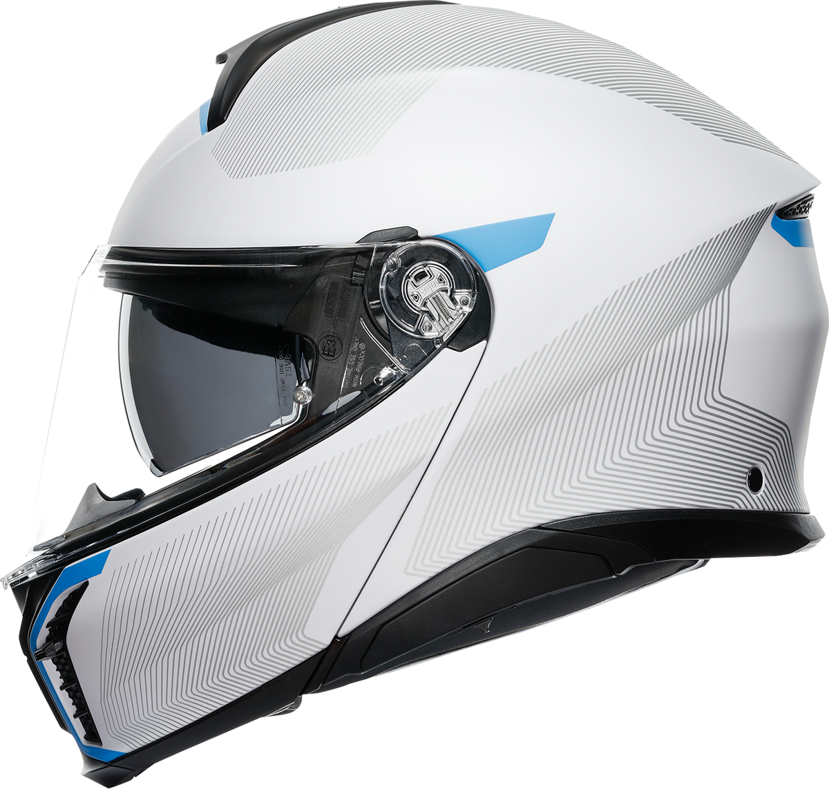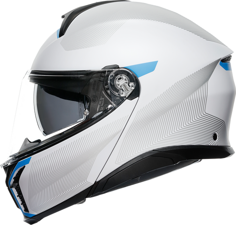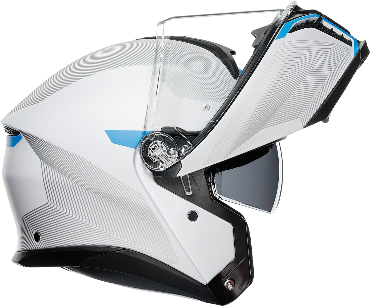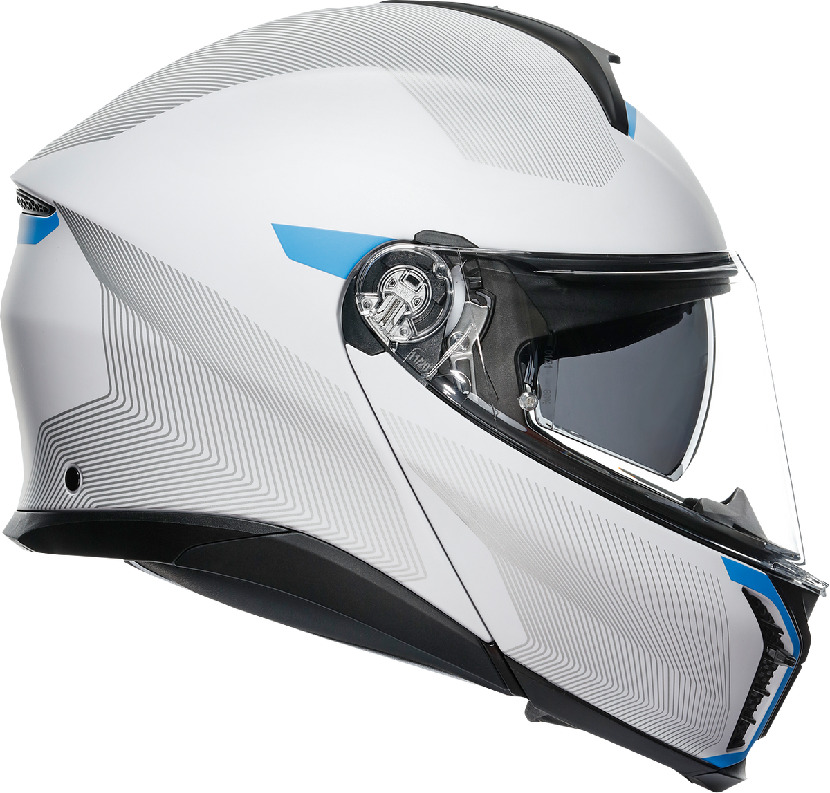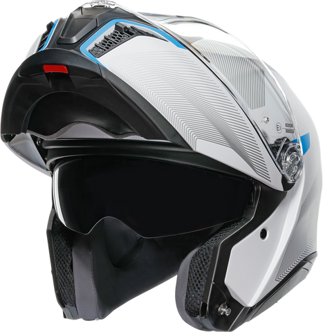 5-density EPS Carbon-aramid-fiberglass shell, Collarbone safe profile, Chin guard opening system designed to prevent accidental opening, Metal chin guard block system ensures the double homologation P/J, Shell shape designed to maximize aerodynamic performance and to have 0 dynamic weight at 80 mph (130 km/h), Ventilation — 4 front vents, adjustable air vents and 1 rear extractors, 2-step chin guard mechanism designed to optimize aerodynamics in jet configuration, Removable and washable interiors, Removable nose guard, Ritmo fabric, fresh and fluid cheek pads, Removable wind protector, Shalimar fabric crown pad for a soft and gentle touch, 2Dry instant sweat absorption, Reflective inserts, Fit especially designed to allow wearing glasses, Sanitized, antibacterial protection, Microsense premium skin comfort interior, Embracing neck roll profile, Ritmo fabric and synthetic leather neck roll with high abrasion resistance and water-resistant properties, Cheek pads interchangeable between all sizes, Anti-scratch, optic class 1 visor with a 85° vertical field of view and a 190° horizontal field of view, Ready for AGV INSYDE communication system, Micro-opening system, Extra quick release system
