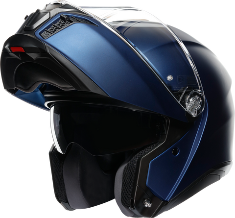 5-density EPS Carbon-aramid-fiberglass shell, Collarbone safe profile, Ventilation — 4 front vents, adjustable air vents and 1 rear extractors, Metal chin guard block system ensures the double homologation P/J, Shell shape designed to maximize aerodynamic performance and to have 0 dynamic weight at 80 mph (130 km/h), Removable and washable interiors, Chin guard opening system designed to prevent accidental opening, Removable nose guard, Removable wind protector, Ritmo fabric, fresh and fluid cheek pads, Shalimar fabric crown pad for a soft and gentle touch, Reflective inserts, Fit especially designed to allow wearing glasses, 2-step chin guard mechanism designed to optimize aerodynamics in jet configuration, 2Dry instant sweat absorption, Sanitized, antibacterial protection, Microsense premium skin comfort interior, Embracing neck roll profile, Ritmo fabric and synthetic leather neck roll with high abrasion resistance and water-resistant properties, Cheek pads interchangeable between all sizes, Ready for AGV INSYDE communication system, Micro-opening system, Integrated anti-scratch sun visor, removable without using tools, Multistep visor mechanism