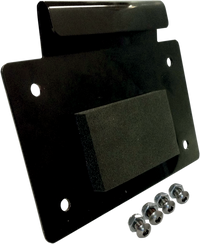 When bike is parked, entire mount can be locked in saddlebag for a clean, secure look, No drilling or fastening needed, Closure of lid holds mount in place, Foam rubber pad on back of mount makes it scratch resistant, Made from aluminum and includes stainless steel license plate mounting hardware, Standard plate size is 4" x 7", Made in the U.S.A.