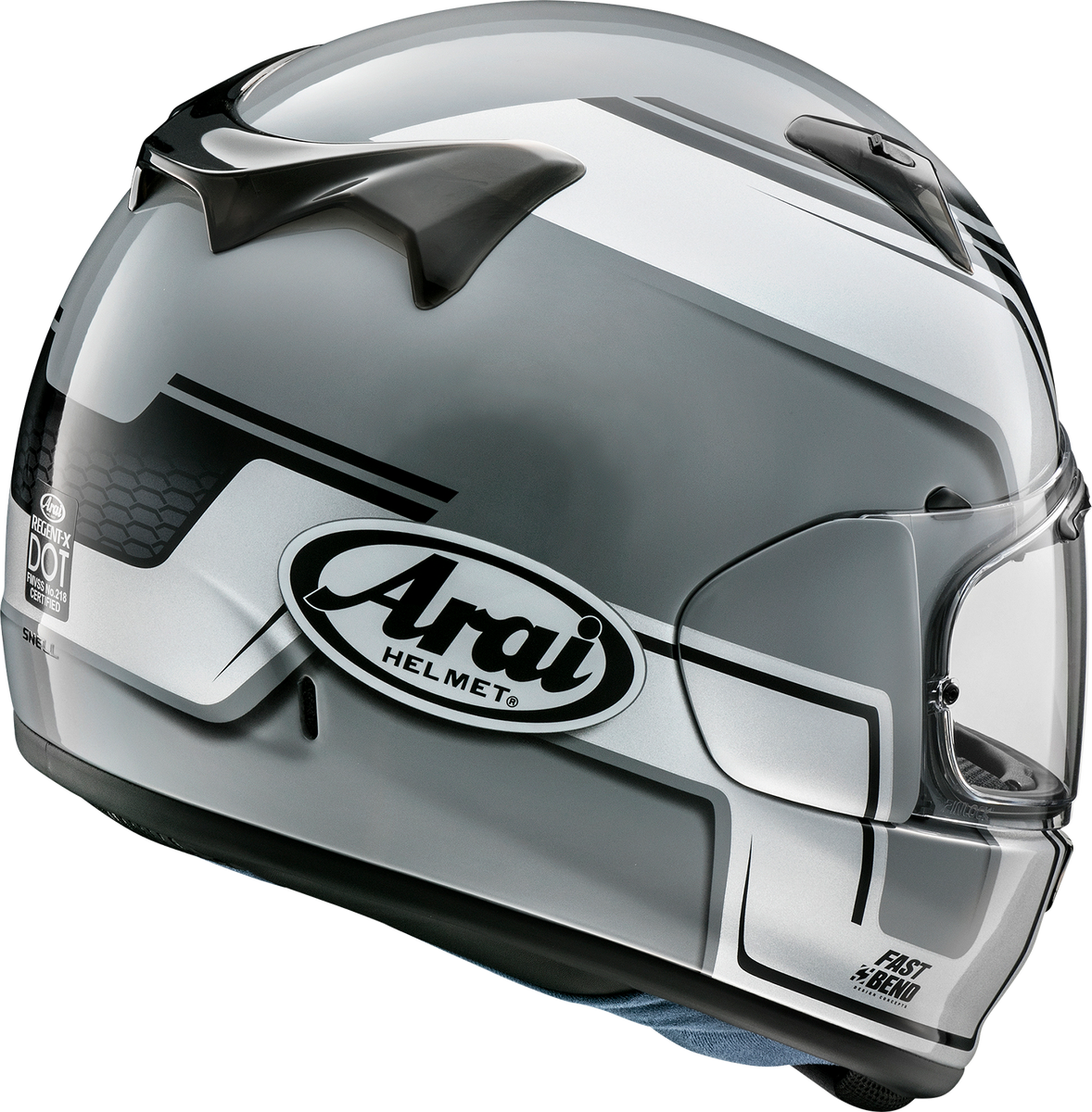 Features intermediate oval shape which fits the majority of head shapes in the North American markets, Quick, easy, and intuitive, the Variable Axis System (VAS) shield mechanism was developed to enhance the shape of the shell, The VAS latch captures and securely holds the shield closed to help prevent unexpected opening, Larger latch allows for intuitive and seamless shield operation, VAS pivot cover is smaller and lower, yielding more area above the cover, Smooth shell along the Snell test line in the temple area increases the helmet's ability to glance off objects during an impact, Peripherally Belted Complex Laminate Construction (PB-CLC) shell is developed to be both light and stronger, Adjustable perimeter liner and cheek pads allow owners to custom fit to their exact size requirement, Soft-brushed, removable liner allows for easy cleaning and provides incredible comfort, FCS® Cheek Pads — The contoured shape — combined with multiple layers of varying foam densities supported by a foam “spring” — cradles the face and helps block wind noise, One-piece exhaust vent improves exhaust performance and aerodynamic stability, Top exhaust vent remains open at all times, assisting with extraction of heat and aiding in relief of moisture build-up in the eye port area that can cause shield fogging, Shell flares 5 mm around the base, making it easier to get the helmet on and off yet remains secure with the FCS2 cheek pads, 2022 Arai Brochure