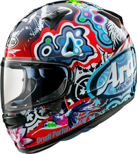 Features intermediate oval shape which fits the majority of head shapes in the North American markets, Quick, easy, and intuitive, the Variable Axis System (VAS) shield mechanism was developed to enhance the shape of the shell, The VAS latch captures and securely holds the shield closed to help prevent unexpected opening, Larger latch allows for intuitive and seamless shield operation, VAS pivot cover is smaller and lower, yielding more area above the cover, Smooth shell along the Snell test line in the temple area increases the helmet's ability to glance off objects during an impact, Peripherally Belted Complex Laminate Construction (PB-CLC) shell is developed to be both light and stronger, Adjustable perimeter liner and cheek pads allow owners to custom fit to their exact size requirement, Soft-brushed, removable liner allows for easy cleaning and provides incredible comfort, FCS® Cheek Pads — The contoured shape — combined with multiple layers of varying foam densities supported by a foam “spring” — cradles the face and helps block wind noise, One-piece exhaust vent improves exhaust performance and aerodynamic stability, Top exhaust vent remains open at all times, assisting with extraction of heat and aiding in relief of moisture build-up in the eye port area that can cause shield fogging, Shell flares 5 mm around the base, making it easier to get the helmet on and off yet remains secure with the FCS2 cheek pads, 2022 Arai Brochure