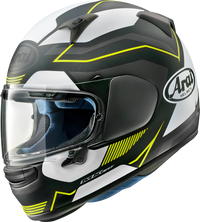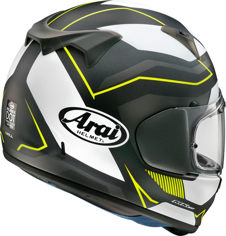 Features intermediate oval shape which fits the majority of head shapes in the North American markets, Quick, easy, and intuitive, the Variable Axis System (VAS) shield mechanism was developed to enhance the shape of the shell, The VAS latch captures and securely holds the shield closed to help prevent unexpected opening, Larger latch allows for intuitive and seamless shield operation, VAS pivot cover is smaller and lower, yielding more area above the cover, Smooth shell along the Snell test line in the temple area increases the helmet's ability to glance off objects during an impact, Peripherally Belted Complex Laminate Construction (PB-CLC) shell is developed to be both light and stronger, Adjustable perimeter liner and cheek pads allow owners to custom fit to their exact size requirement, Soft-brushed, removable liner allows for easy cleaning and provides incredible comfort, FCS® Cheek Pads — The contoured shape — combined with multiple layers of varying foam densities supported by a foam “spring” — cradles the face and helps block wind noise, One-piece exhaust vent improves exhaust performance and aerodynamic stability, Top exhaust vent remains open at all times, assisting with extraction of heat and aiding in relief of moisture build-up in the eye port area that can cause shield fogging, Shell flares 5 mm around the base, making it easier to get the helmet on and off yet remains secure with the FCS2 cheek pads, 2022 Arai Brochure