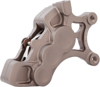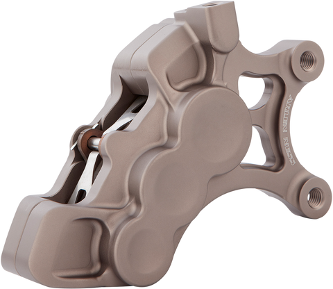 6-piston brake calipers CNC machined from billet aluminum, Features caliper bodies that are engineered for form and function, 3D sculptured design helps facilitate cooling incurred while braking, Designed and engineered to be extremely stiff under stress ensuring precise and consistent braking performance, Cooling fins machined into the inner caliper halves help disperse heat