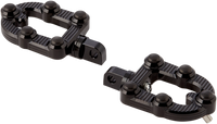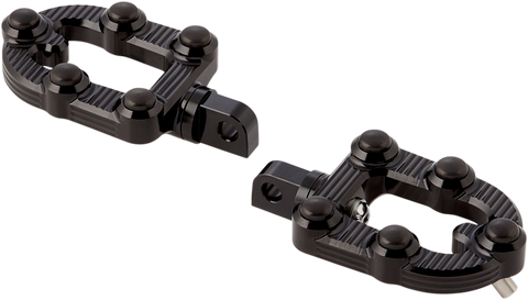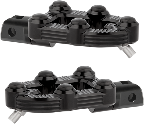 Ness MX foot pegs feature a lightweight cut through design with integrated rubber inserts resulting in a cut through design with excellent foot traction, CNC machined from billet aluminum, Each peg features CNC machined cuts on the top and side of the peg body for style that can be seen at every angle, Rubber inserts offer foot traction and protect the finish of the peg, inserts are replaceable, Foot peg mounts sold separately