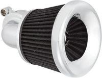 Hidden breathers are o-ringed at the heads and exit at the mouth of the throttle body/carb to provide efficient engine breathing in a virtually closed loop system, eliminating the need for any external hoses or hardware, Aggressive short length intake tube engineered to significantly increase airflow without sacrificing legroom, Designed to work with factory lowers, Velocity style performance air filter features a built-in inverted top to pull in air from the front and sides, for more performance gaining airflow