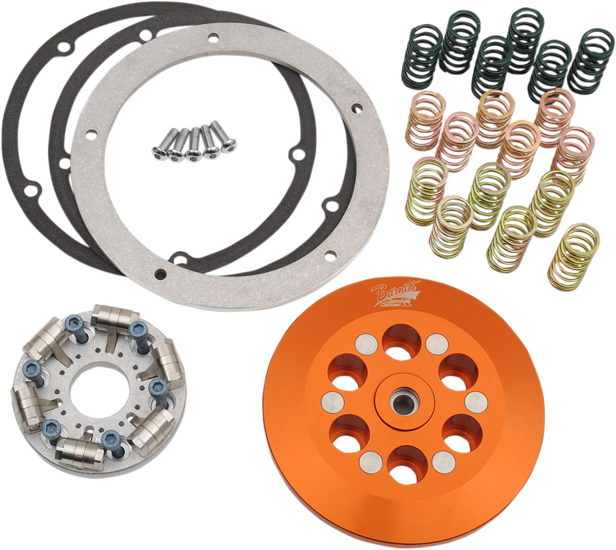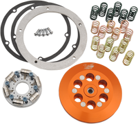 New low-profile design fits under stock primary cover, Low-profile design fits under stock primary cover, Direct bolt-on design retro-fits to existing Scorpion billet clutches, Direct bolt-on design retro-fits to existing Scorpion billet clutches, Progressively increases pressure as rpm increases, Progressively increases pressure as rpm increases, CNC-machined, 6061 T-6 billet aluminum, Perfect for large-displacement, high-horsepower motors, Perfect for large-displacement, high-horsepower motors, Made in the U.S.A., Made in the U.S.A.