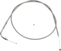 Stainless steel cables with clear coating offer that custom look without the fear of damaging areas that the cables come in contact with, Available with nylon-lined, PVC-coated casings in standard diameters, Made in the U.S.A., Length of throttle and idle cables measures outer housing only, excluding the elbows and/or adjusters.